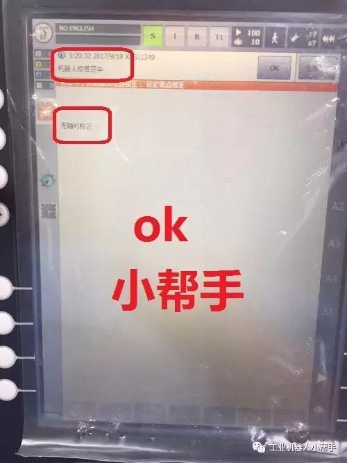 step 1:T1模式,無選擇程序,程序啟動鍵正常,機(jī)器人各軸到達(dá)零點(diǎn)附近位置;