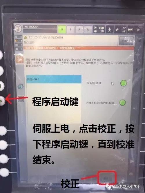 step 6:伺服上電,點(diǎn)擊校正,按下程序啟動鍵,直到校正完成;